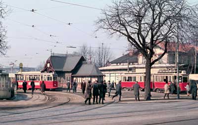 In den 1960-er Jahren verabschiedeten die "Hamburger Verkehrsamateure" mit Sonderfahrten zahlreiche Linien und Altbaufahrzeuge der Hamburger Straßenbahn. Sie übernahmen auch bereits die ersten Wagen für eine museale Erhaltung, so auch den Z2-Zug, der hier Anfang Mai 1965 auf Abschiedsfahrt in der Schleife Ohlsdorf zu sehen ist. Foto: © W. Greiffenberger
