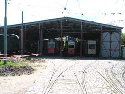 Ab 1997 wurde mit ABM-Unterstützung aus teilweise altbrauchbaren Teilen eine Fahrzeughalle für Eisenbahnen und Straßenbahnen errichtet, die es erlaubt, einigermaßen vor der Witterung geschützt hier Restaurierungsarbeiten an den Fahrzeugen durchzuführen und zumindest einen Teil von ihnen geschützt abzustellen. Ein Stellwerk, von unserem früheren Mitglied Gerd Twisselmann errichtet und ausgestattet, zeigt nicht nur historische Stellwerkstechnik, sondern ist auch dafür ausgelegt, die Weichen und Signale des Bahnhofs Schönberger Strand zu steuern.