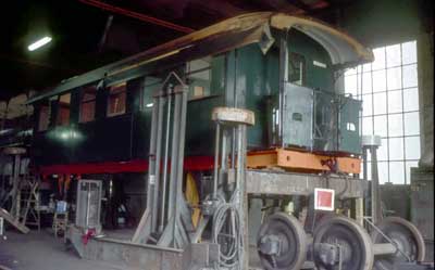 Der Museumsbetrieb erfordert nun auch Hauptuntersuchungen und konstruktive Aufarbeitungen, die wegen der Arbeitsmöglichkeiten anfangs in Aumühle stattfanden. Hier ist der Ci 1082 unterseits total demontiert. Die Seitenbeblechung ist bereits erneuert und ein neuer End-Dachspriegel eingebaut, während das Aufbringen der neuen Dachhaut unterbrochen ist. Foto: © W. Greiffenberger